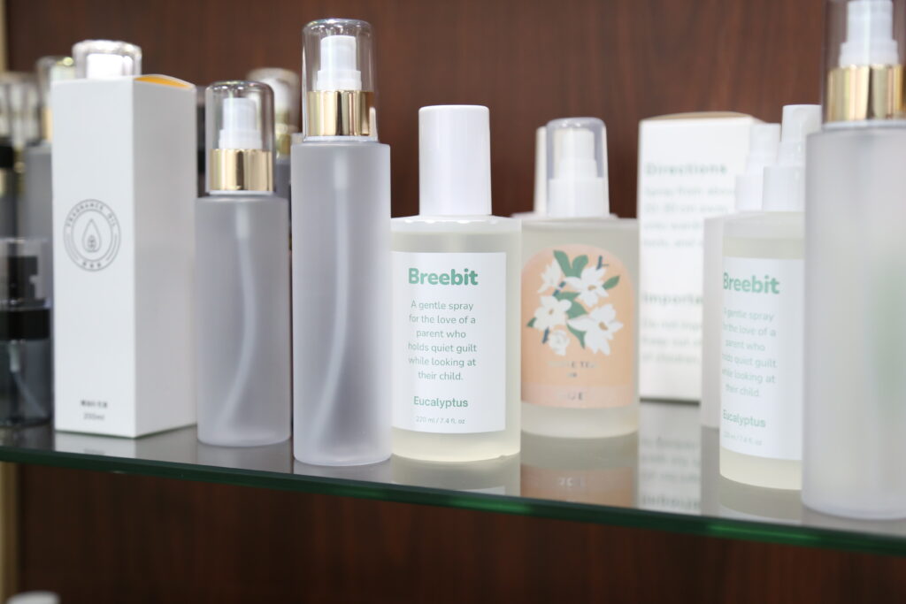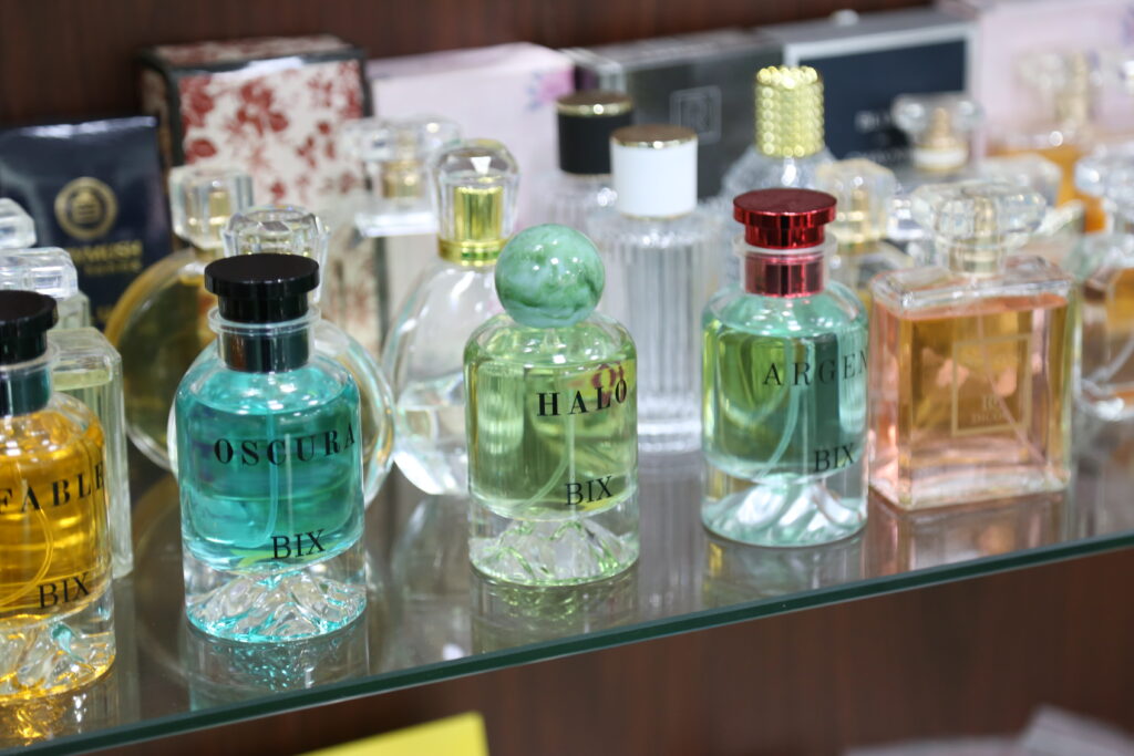 Clean storage systems, organized formulation areas, sample displays, and packaging coordination reflect how our fragrance oils are ultimately used — as part of branded products, not anonymous raw materials.